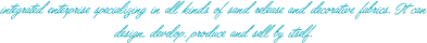 從事各類(lèi)沙發(fā)布、裝飾布的工貿(mào)一體化企業(yè),可自行設(shè)計(jì)、開(kāi)發(fā)、生產(chǎn)、銷(xiāo)售。